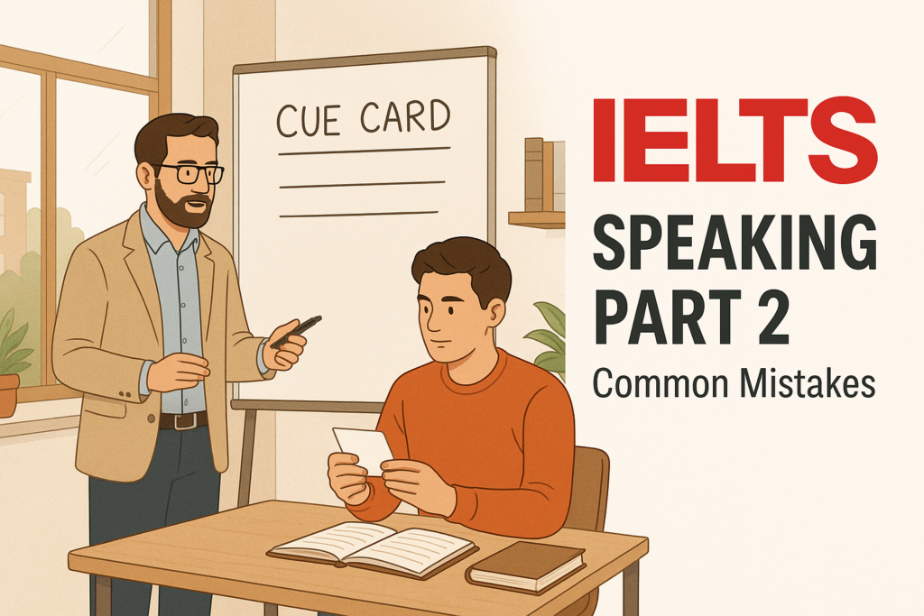 If you are searching for IELTS Speaking Part 2 common mistakes, there is a good chance you already know the problem is not always your English level. Many candidates understand the cue card, have enough ideas, and still lose marks because the answer becomes too short, too vague, too memorised, or too repetitive once the timer starts. Part 2 looks simple, but it exposes weak habits very quickly.